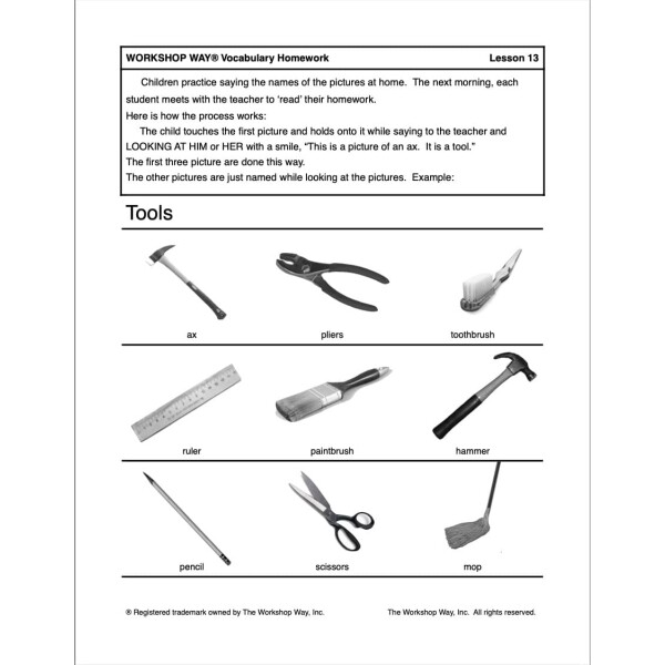 Kindergarten Vocabulary Homework is included when purchasing the Kindergarten Handbook for a Workshop Way® Classroom Bundle.